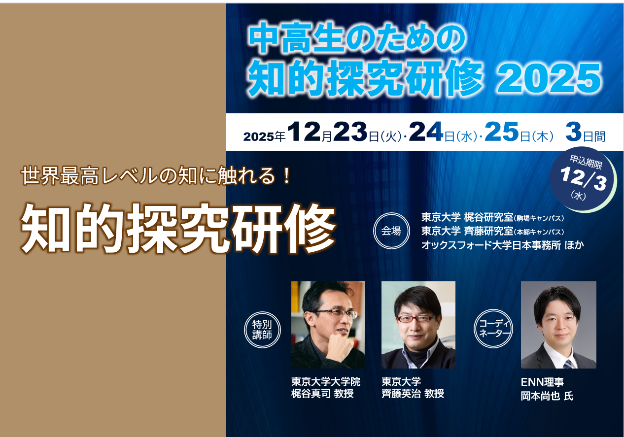 「中高生のための知的探究研修2025」申込受付中